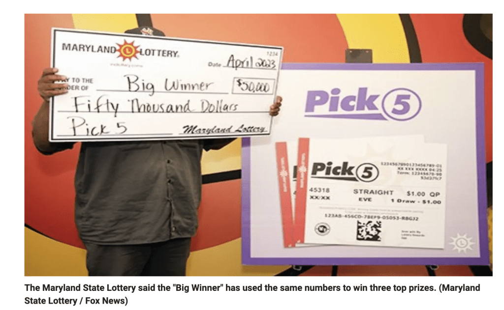 This guy in Maryland won the lottery 3 times this year…